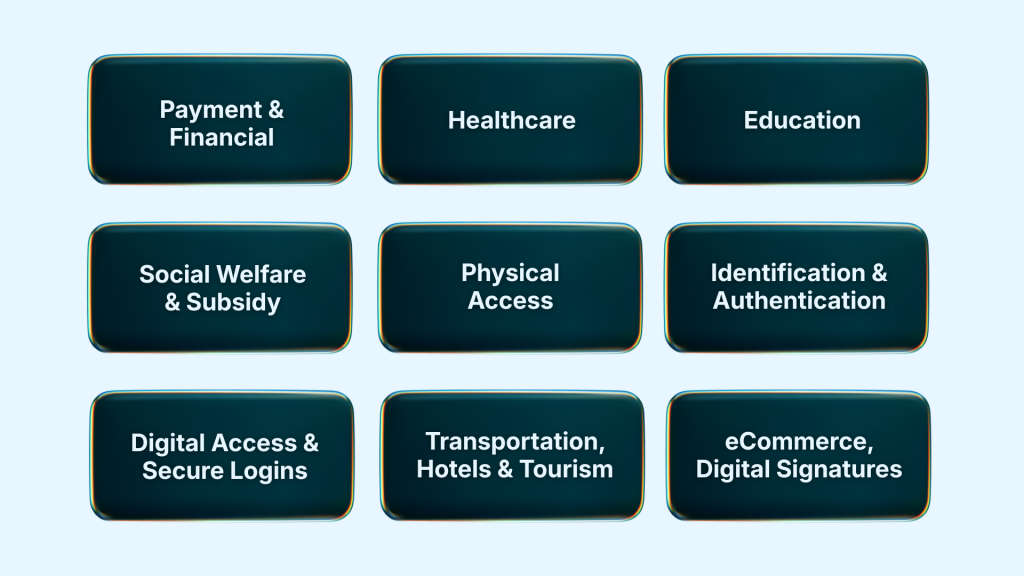 Our biometric ID solution is a single platform that spans multiple verticals, from Payment & Financial services, Healthcare, Education, and Social Welfare Subsidies, to Physical and Digital Access, Identification & Authentication, Transportation, Border Control, Hotels & Tourism, E-commerce, and Digital Signatures. By integrating these capabilities into one seamless system, we help government organizations simplify operations, enhance security, and deliver trusted, efficient experiences for users across every sector.